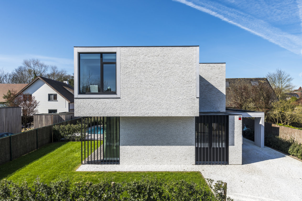 Koksijde - Moderne villa met lichte gevelsteen en contrasterend schrijnwerk