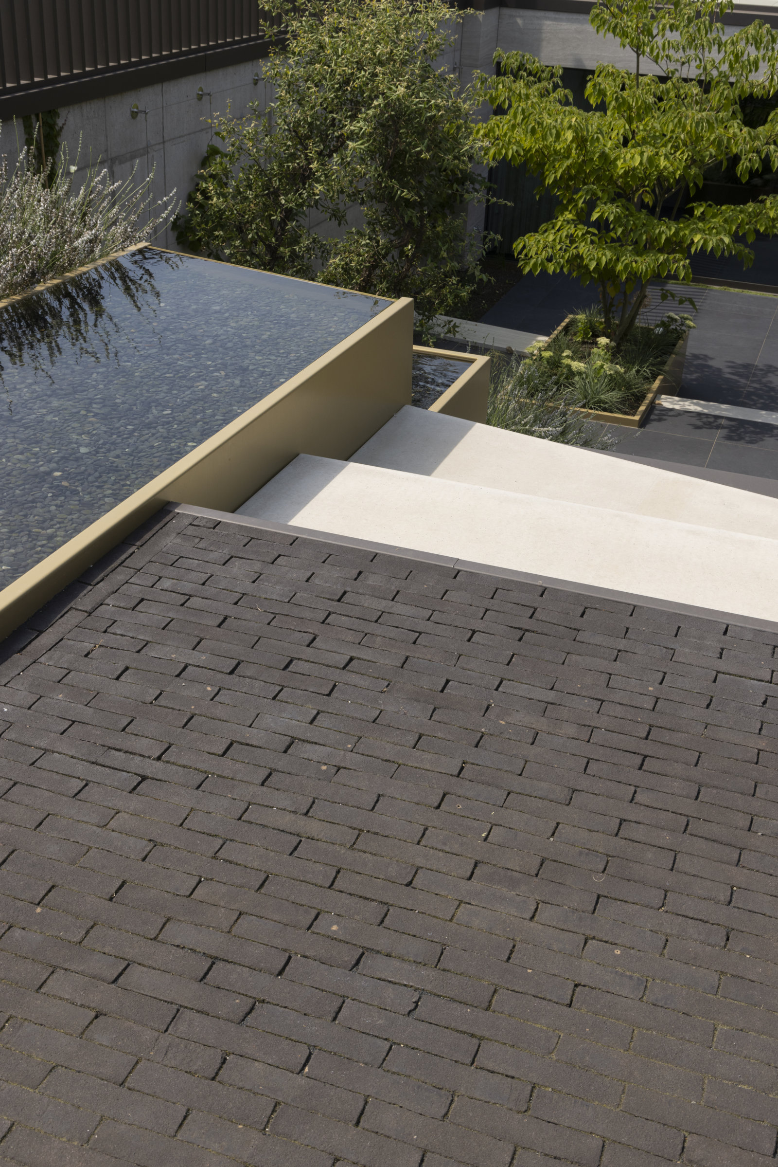 Heusden-Zolder - Strakke tuin met donkere kleiklinker